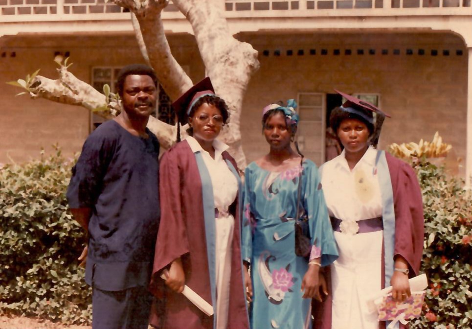 Pastor (Mrs.) Esther O.W. Effiong at her graduation from Nursing school flanked by her brothers and her mother.